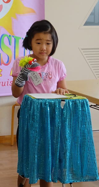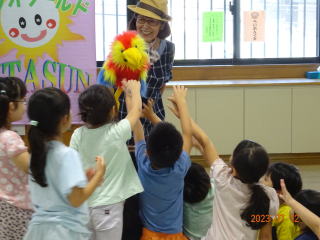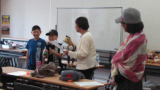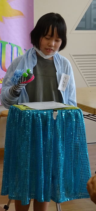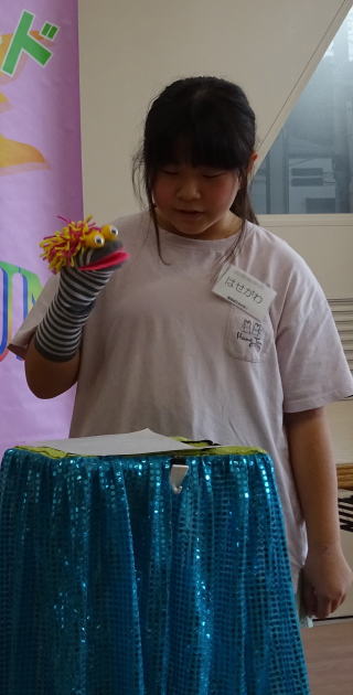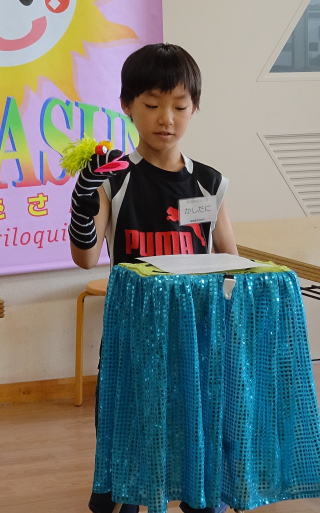 マジックの後は、ミニ腹話術タイム教室、6人の子が前に出て