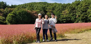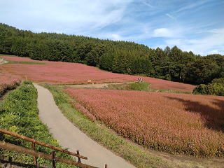 白鳥さんの運転で「蕎麦の里」に直行、一面がルビーの