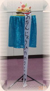 花の中の口からは「20周年おめでとう!」垂れ幕が