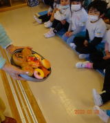 5歳児がホールに集まって来ました。