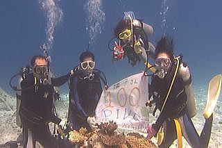 | 今や思い出となってしまった海 体にいいモノが注目されている昨今ですが私達夫婦にはダイビングこそが百薬の長! 青い海はもうひとつの宇宙 小さな発見と感動がいっぱい! 娘達も成長し 教育費の目処が付いた頃から夫婦でダイビングを始めたのです。 5年間という短い期間でしたが美しい海を求め異国の文化や人に触れ合いながら 人生の潤滑油であるダイビングを楽しむ事ができました。 13本目から水中カメラデビューをしました その頃は ダイビングにも不慣れな私でしたが 2台目のカメラに買い替えてからは ダイビングを重ねる程に楽しくなりました。主人はビデオにはまっていました。 目標100本!2006年 8月大好きな沖縄座間味にて念願の100本記念ダイブを迎える事ができました。 私達のお気に入りのダイビングショップ沖縄座間味の「やどかり」でお祝いして戴きました。 とてもアットホームなショツプで オーナーの宮平秀和さんは 無口ですが水中写真の腕前は絵葉書になる程です。 奥様の手料理も最高! ログ付けは スタッフとゲストとが泡盛を飲みかわし、その日のダイビングのビデオを観ながら始まります。 それもBGM付きです。私達は やどかりのリピーターで何度かお世話になり、ダイビングはやっぱり 沖縄!夫婦で座間味がお気に入りでした。 2007年、夫婦にとってニュカレドニアが最期のダイビングとなってしまいました。110本でストップしました 夫婦で愛した美しい海がいつまでいつまでも後世に 引き継がれる事を祈って、水中世界のHPを作りました 夫と共通の趣味であったスキューバダイビング二人一緒に海に潜り、何度感動を覚えた事でしょう!二人が好きだった海 海=地球 地球をいイメージし、墓石は球体、文字は 勿論「海」に決めました。 墓石は岩手県の石材店「小野忠石材店」に オーダーしました。 シンプルで私達らしいお墓に満足です。 セブンシーズ PADIのライセンスを取得したDSです ダイブハウスやどかり 沖縄座間味のお気に入りのDSです アットホームでオーナーも犬の はーる ちゃんにも癒されます~ 安全でしかも期待に応えてくれる ガイドをしてくれますよ~ 100回目の記念ダイブもここでした~ 何度訪れてもいいですよ!!