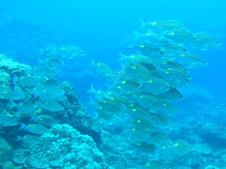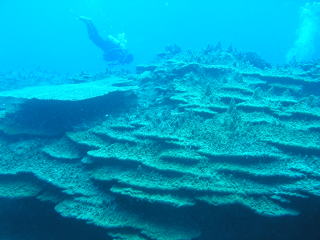 まだまだ行ってみたい海が 沢山あります! 国際サンゴ礁年 温暖化で白化進む危機 人間への恩恵を知ろう! 日本や米国 豪州など44ヶ国が参加する国際協力のの為の組織「国際サンゴ礁イニシアティブ」がサンゴを保全する意識を世界中で高めようと決めたもので 2008年の一年間 官民が協力して各国で様々な活動が展開される様です。 キャッチフレーズは 「知ろう、行こう、守ろう」 サンゴについて関心を持つ人を増やすのが第一目標 だそうです。 サンゴが危機的な状況に直面している事で。特に深刻 なのが 世界中で広がっている白化現象です。 サンゴは動物ですが 体内に褐虫藻という植物の藻類が共生しています。 褐虫藻は高温に弱く 海水温が30度を超える状態が 続くとサンゴから抜け出してしまう。 そうなるとサンゴが白っぽく見えるこれが白化です。褐虫藻は光合成で作った栄養をサンゴに与えており 白化が続くとサンゴは栄養不足で死んでしまう。 白化だけでなく 天敵のオニヒトデの大発生や沿岸開発にによる赤土の影響もあり沖縄本島では 30年前 に比べて8割以上のサンゴが失われています。 将来平均気温が1~2度上昇すると 世界各地でほとんどのサンゴが白化するそうです。 ダイビングにかかわらない人にとっても サンゴは密接に関係しています。 サンゴのある海は 世界のわずか0.2%ですが 海洋 生物の4分の1の種類が集まる生物の宝庫です。 サンゴが少くなくなると サンゴをすみかにしている小魚を食べに来る大きな魚も減り「海の恵みはサンゴから」と言う生態系の連鎖が崩れてしまう。 また サンゴがつくる浅瀬は 波の力を吸収し 津波の被害を抑える「自然の防波堤」の役割も果たしています。人間にもたらしてくれる恩恵を多くの人が確認する必要があると思います。 地球は悲鳴を上げています! 今までダイビングを楽しませてもらった「海への恩返し」と思い この記事を紹介しました。 普段の生活を見直し小さな積み重ねですが 自分のできる事から実行して行きたいと思います。 2008 1・7朝日新聞より抜粋 サンゴ7割消えた! 日本最大のサンゴ礁域、沖縄県・石西礁湖のサンゴが、この5年間で7割失われていたこと、国立 環境研究所と朝日新聞の共同調査で分かった。 白化現象が最大の原因とみられる。 地球温暖化で白化頻発するとさらに損傷を受ける恐れが高い。 最大の原因は2007年夏~秋に白化とみられる。 台風の大波でサンゴが破壊された場所も 多かった。 石西礁湖ではサンゴを食い荒らすオニヒトデも 増加しているが、今後もっとも懸念されるのは 海水温上昇に伴う白化の多発だ。 気象庁のよると、この海域の海面水温の年平均値は 過去約100年ですでに0.7度上昇している。 2008 9・10 朝日新聞より抜粋 |